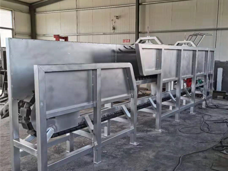 结构及工作原理由机架、输送链、传动装置、需手工麻电器组成。当猪体由输送链输送至前端时,人工上链